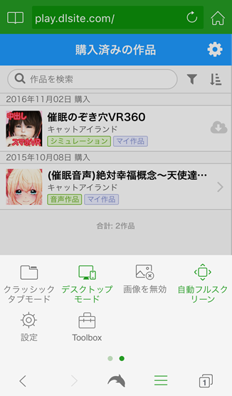 でも大丈夫。デスクトップモードがありますよ。 三本線をタップして右側にスワイプするとデスクトップモードの選択ができます。 ちなみにsafariでも右上のリロードマーク長押しすると デスクトップモードがあって同じ方法でDLできます けど…ロードがないのでダウンロードされてるのかわからないのと、 大きいファイルはキャッシュが残るみたいなのであまりおすすめはしません。 あとsafariさんは、すぐに他のアプリに転送する事前提となります。 safariでダウンロードする際は わたしみたいにキャッシュ消す為に履歴消しちゃって あう〜 (泣 ってならないように気をつけて下さいね。