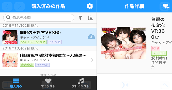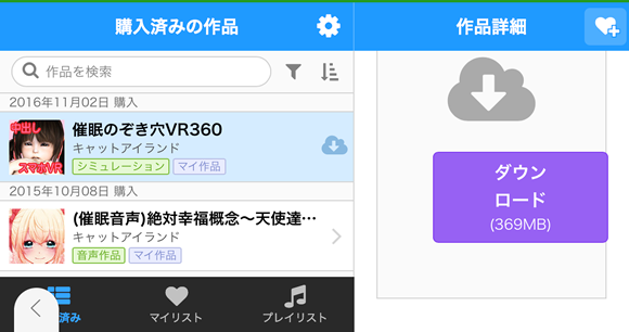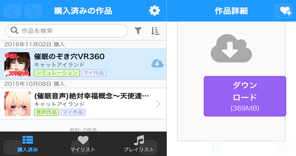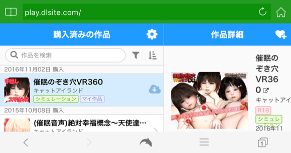 第二回は、“まな”がお送りいたしますよ~。 今回は、DLsitePlayのiPhoneでのダウンロードが解りにくいと お便りを頂きましたのでダウンロードから動かし方まで わたし、“まな”が詳しく解説させていただきます。 PCからのダウンロードやitunesからアプリへの転送は 色々な方がご紹介していると思いますので 今回は割愛させていただきます。 ダウンロード方法は、無料ソフトと有料ソフトの2種類のアプリでご紹介いたします。 どちらかお好きな方でダウンロードしてくださいね。 無料のドルフィンはzipの解凍はできませんので、 無料のDocuments 5や有料のGood Readerなどのアプリに転送してお使いください。 それでは、いってみましょう。 ○ドルフィンでのダウンロード方法PCなどで表示すると催眠のぞき穴VR360の右側に雲みたいなマークがありますね。 これがPCゲームなどは、モバイル端末でそのまま表示するとないんです。