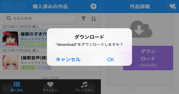 は〜い注目! タップじゃありません、 ダウンロードボタンをホールドしてください。 タップだと'から'のファイルがダウンロードされちゃいます。 お姉ちゃん試したから知ってます。