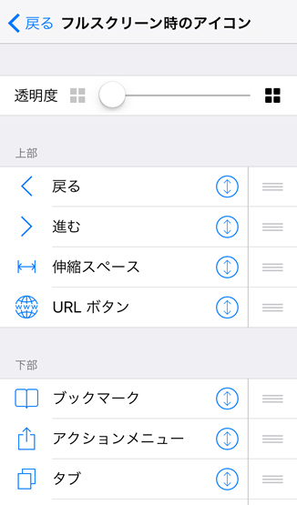 下のフルスクリーンモードの方の ツールバーのアイコンですっ。